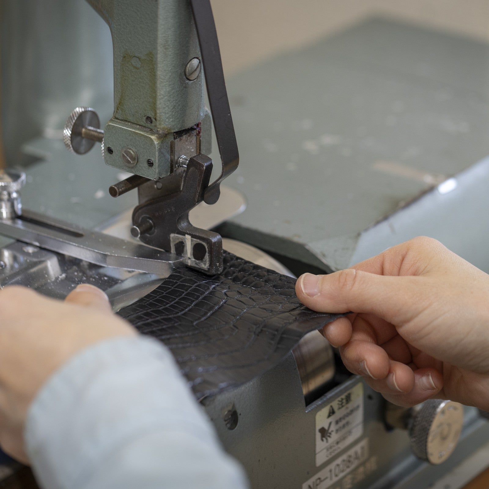 厳選したスモールクロコダイルの竹斑部分のみを使用してマット仕上げし、国内の時計バンド専門職人が手作業で製作したApple Watch (42,44,45,46,49mm)専用バンド。